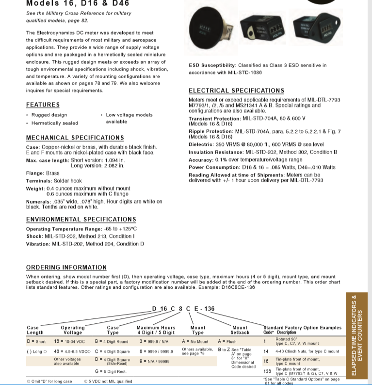 交流電表的研制是為了滿足最困難的要求許多航空航天應(yīng)用的要求??稍?0Hz, 60Hz和400Hz配置,交流系列儀表滿足或超過(guò)一系列苛刻的環(huán)境要求規(guī)格包括沖擊、振動(dòng)和溫度。一個(gè)可提供多種安裝配置, 電動(dòng)力學(xué)超小型事件計(jì)數(shù)器設(shè)計(jì)以滿足許多最困難的航天應(yīng)用。這些崎嶇的計(jì)數(shù)器符合或超過(guò)一系列嚴(yán)格的環(huán)境規(guī)范包括沖擊、振動(dòng)、溫度和包裝在一起密封微型外殼。堅(jiān)固的事件計(jì)數(shù)器被組裝并填充一種介質(zhì)潤(rùn)滑劑,它能抑制極端情況的影響振動(dòng)和熱沖擊。