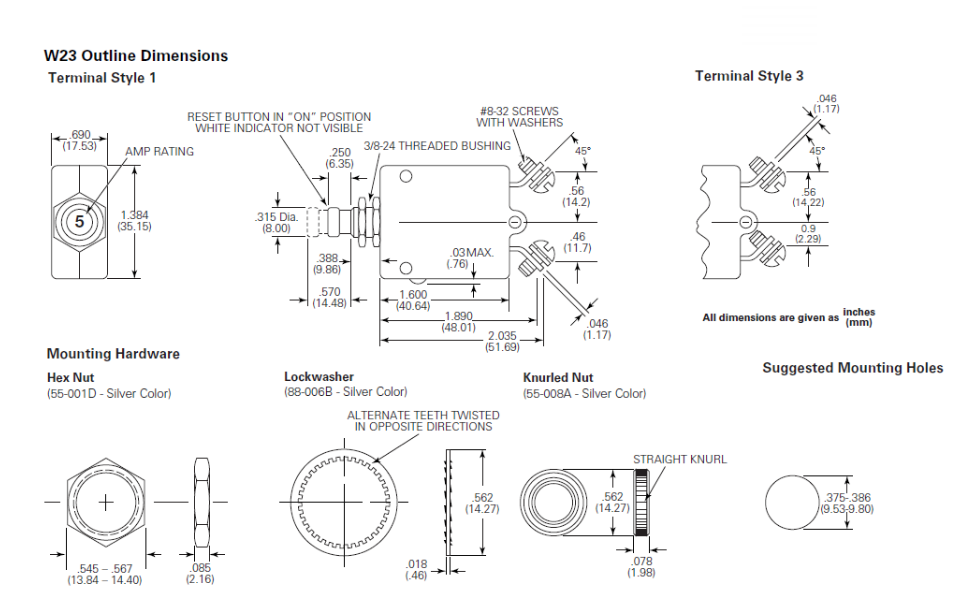 Mounting: W23 — Threaded bushing, 3/8” (9.53mm) diameter.