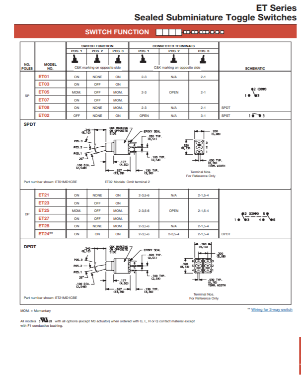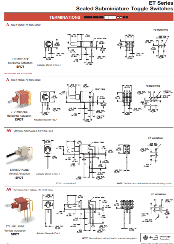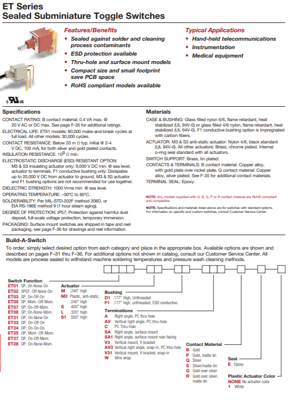 C&K的ET系列是密封的超小型開關(guān),通常用于醫(yī)療和電信行業(yè)的手持或儀器應(yīng)用。具有較小的足跡(以幫助節(jié)省空間的PCB)和靜電放電保護(hù),持久的ET開關(guān)也有很強(qiáng)的保護(hù)來自焊錫和清洗過程中的污染物。